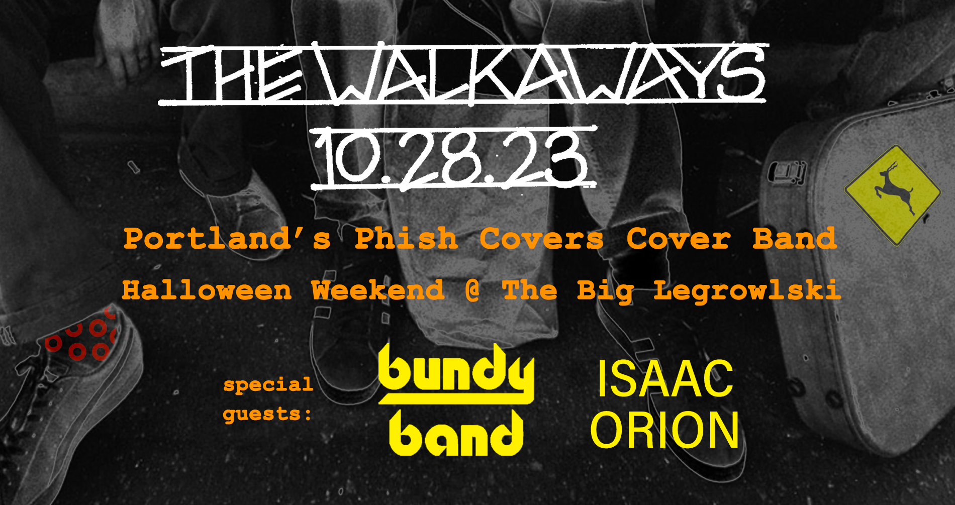 Phish is taking Halloween off this year, but The Walkaways aren’t! Portland's Phish Covers Cover Band cordially invite you to their 1st ever Halloween Spectacular. Featuring a set from the amazing BundyBand, a Live Synth + DJ set from ISAAC ORION, jammy treats from Phish Halloweens past, and a top-secret costume set you will never, ever guess!